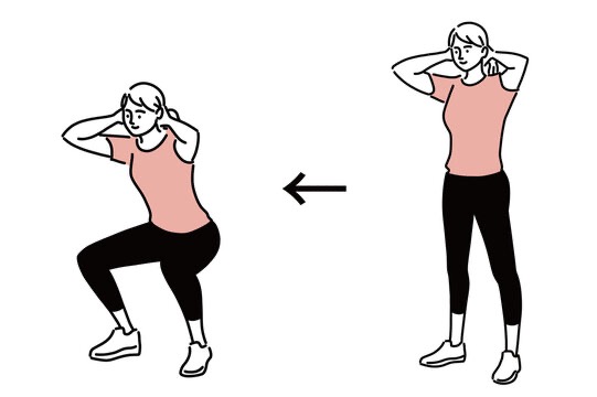 深さ: 太ももが床と平行になるまで腰を落とす